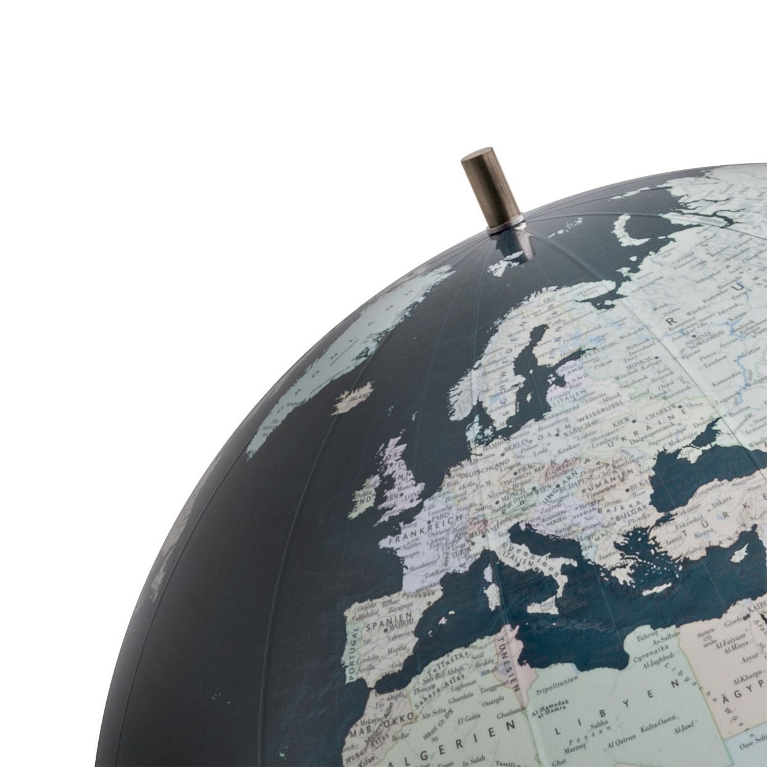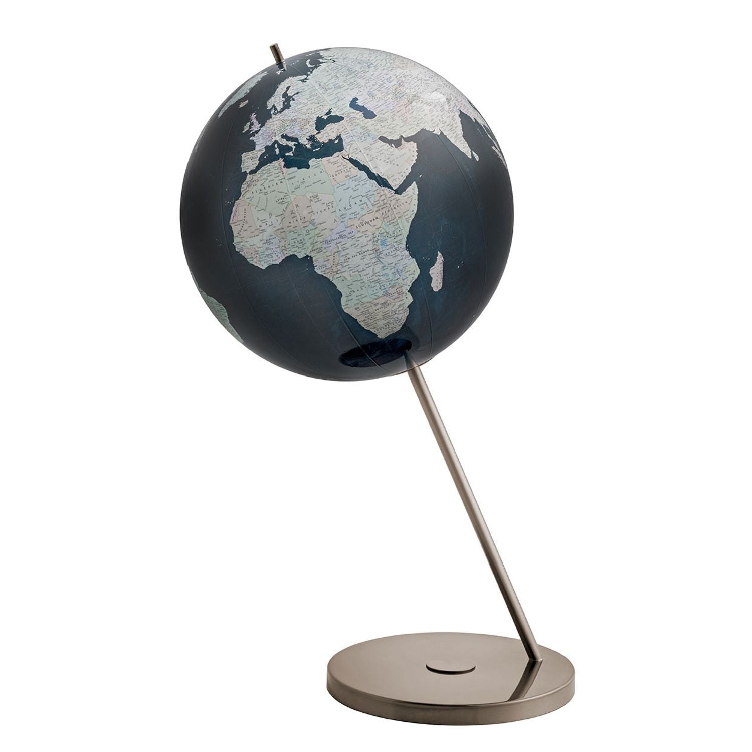 Die Modelle der COLUMBUS BLACK SERIES sind Globen von höchstem Designniveau, alles andere als gewöhnlich und darüber hinaus noch einzigartig. Die dunklen Farben und das hochwertige Edelstahlgestell fügen sich zu einem äußerst eleganten und modernen Erscheinungsbild zusammen. Im unbeleuchteten Zustand zeigt das Sonderkartenbild des BLACK SERIES Globus die politischen Grenzen der Länder auf der Erde, basierend auf aktuellsten Daten. Von den schwarzen Gewässern heben sich die Kontinente in blassen Farben ab. Durch die verschieden eingefärbten Länder können einerseits die Grenzen leichter erkannt werden, zum anderen ergeben sie eine harmonische Einheit. Die silbrig schimmernden Beschriftungen, die dunklen Farben und der glänzende Stahl erzeugen den Eindruck von besonderer Extravaganz.