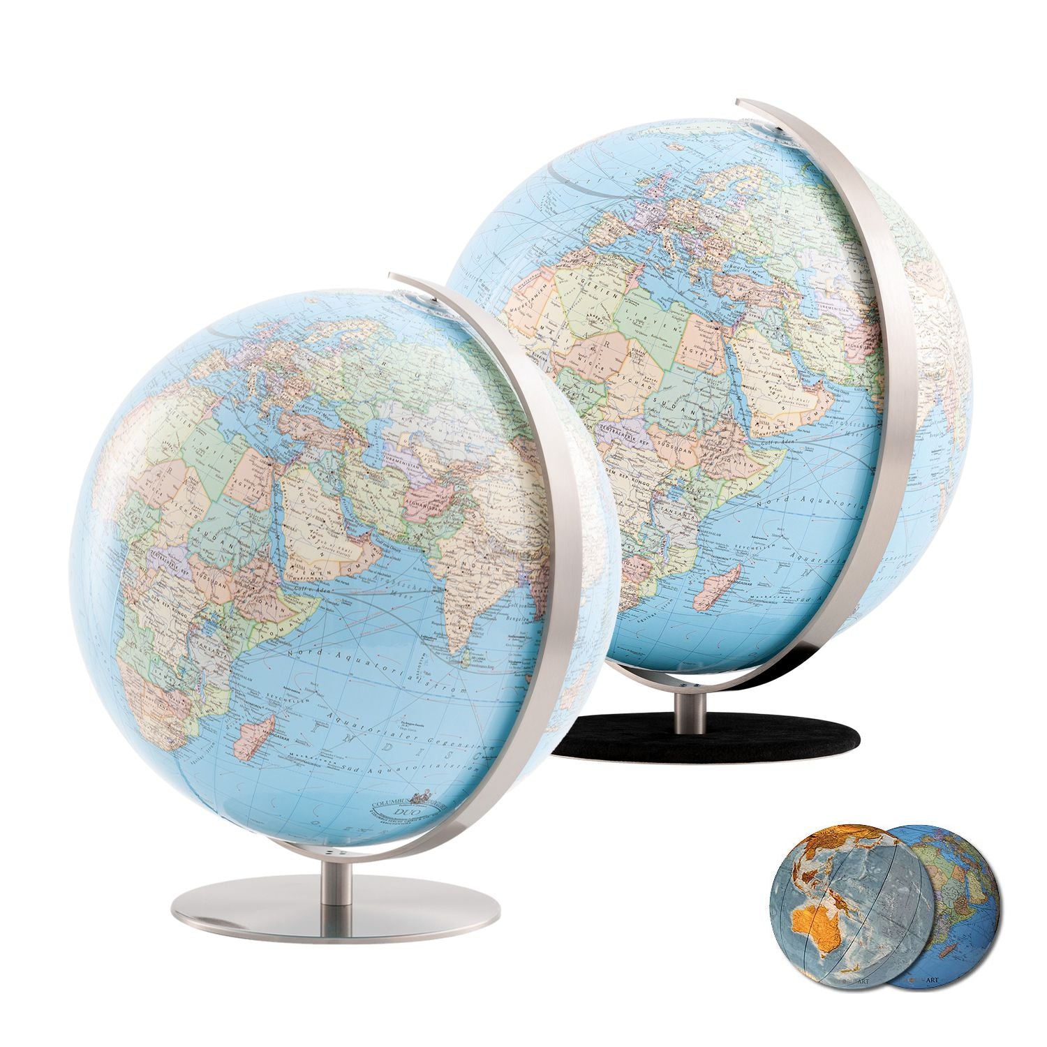 Die DUO Leuchtglobus von Columbus ist ein edler Blickfang für jeden Schreibtisch. Die unterschiedlichen Kartenbilder werden sorgfältig von Hand auf die Acrylglaskugel kaschiert. Dank der optionalen Beleuchtung, stehen Ihnen zwei verschiedene Kartenbilder zur Verfügung - ein politisches und ein physisches. Brillanz der Farben in beleuchtetem Zustand und Farbharmonie des politischen Kartenbilds werden durch eine unübertroffene Fülle an Informationen ergänzt. Beleuchtet sehen Sie das physische Kartenbild, unbeleuchtet das politische Kartenbild.