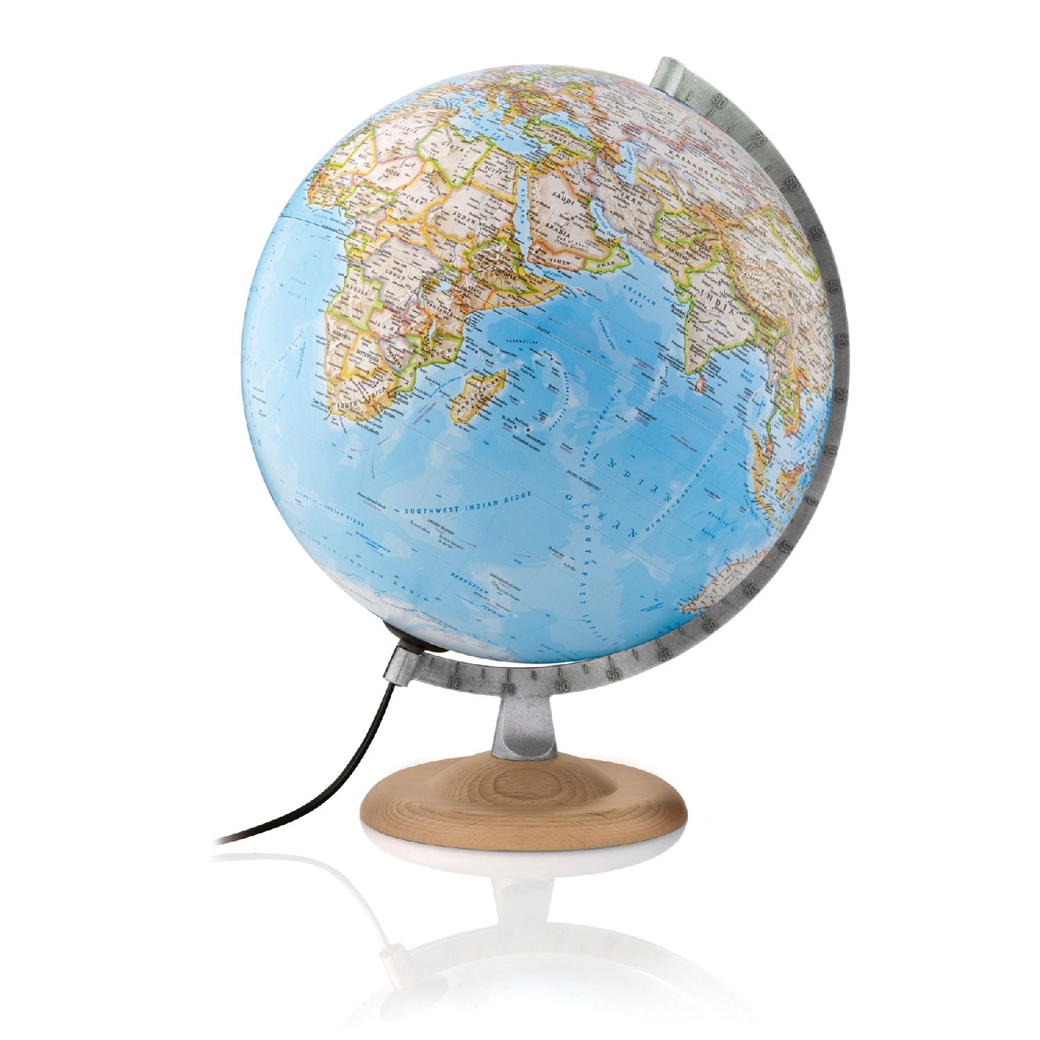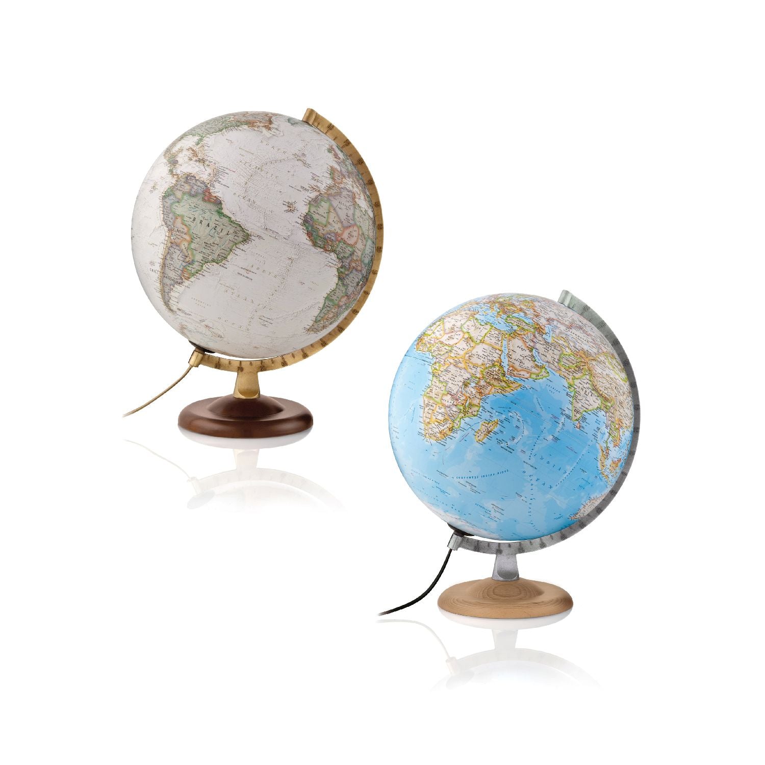 National Geographic Leuchtglobus Silver Classic oder Gold Executive mit 30 cm DurchmesserDieser beleuchtete Tischglobus von National Geographic zeichnet sich durch Stil und klassisches Design aus. Die Kugel mit der durch die National Geographic Maps Division erstellten Kartographie "Classic" oder "Executive" hat einem Durchmesser von 30 cm. Das Kartenbild ist im Wesentlichen politisch, physische Informationen sind durch Schattierungen angedeutet. Über 2.000 geografische Namen sind auf diesem Leuchtglobus verzeichnet.